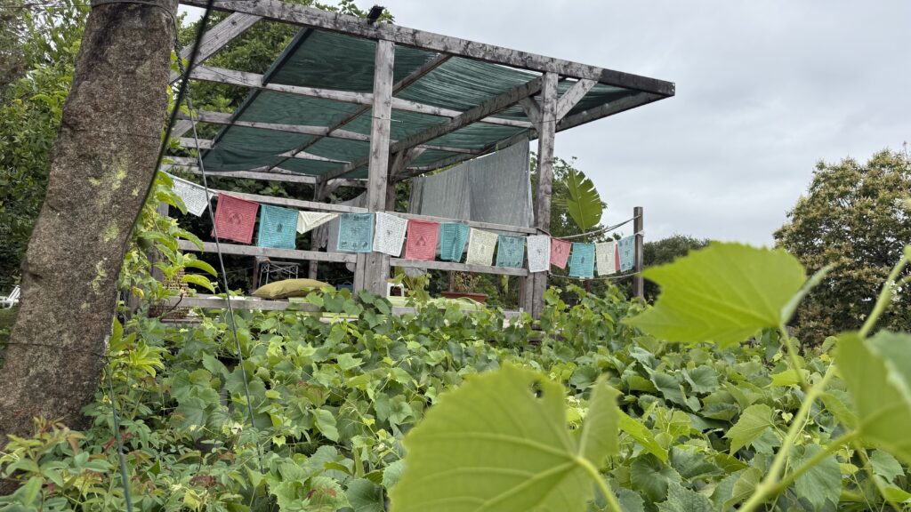 Ich lasse den Tag treiben. Keine Eile, kein Ziel. Sitze auf der Terrasse, Füße hoch, Blasenpflege deluxe. Ein bisschen Internet, ein bisschen Windspiel lauschen. Ich döse später unter einem Baum weg – wertvolles Nickerchen. Wären da nicht die Nachbarn mit ihrem Hausbau-Lärm. Maschinen kreischen, sägen, brummen. Schade. Aber so ist das Leben eben: mal tibetanisches Windspiel, mal Betonmixer mit Winkelschleifer.