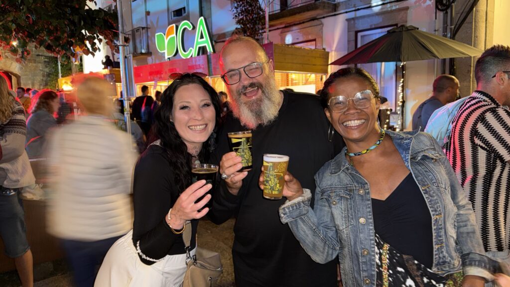 Finale. Nein! Wir fahren zu dritt nach Caminha. Dort ist für 4 Tage „Art Beer Fest“. Wir trinken geschmacklich angereiches IPA-Bier und hören eine nicht für mich bestimmte Soul-Musik. Aber passt. Später trifft Laura einen Kollegen, der führt uns in einen Pub eines Freundes. Gute Musik und große Auswahl an Getränken. Mir sticht ein Name ins Auge – „Rochefort 10“. ich setze darauf – Cocktail? Nein Bier. Es schmeckt Belgisch. Fragezeichen im Kopf – wirklich? Ich lese nach – kommt aus Rochefort – unserm Kajak-Ort. Verrückt. Ich erzähle es dem Mann neben mir und er sagt: „ja, die Semois ist wunderschön, wir sind auch laufend da“. Kopfkino an. Inmitten Portugal!