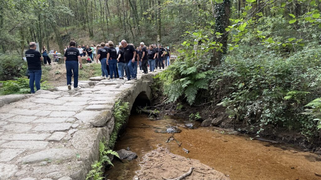 Irgendwo zwischen „nirgendwo“ und „noch weiter weg“ hören wir plötzlich Musik. Kein Radio. Live. Da steht tatsächlich ein spanischer Chor mitten im Wald und singt für Pilger. Ich wiederhole: Mitten. Im. Wald. Es gibt Brötchen mit Serrano-Schinken, Kaffee, und diese eine Sorte Gänsehaut, die nur dann kommt, wenn etwas wirklich Besonderes passiert. Wir lassen uns treiben, schwingen weiter.