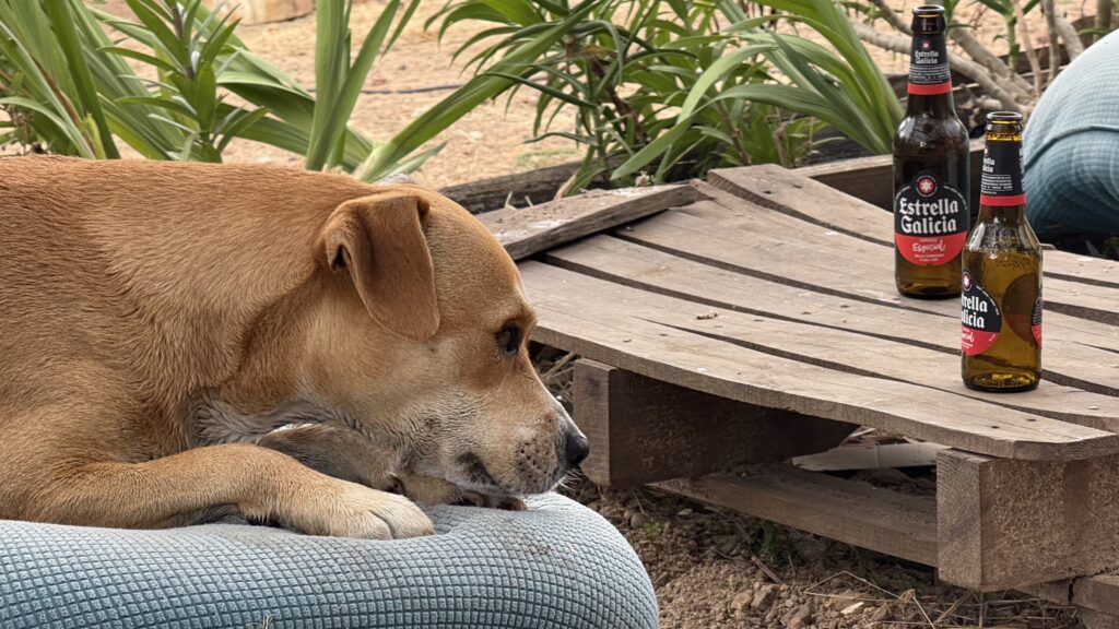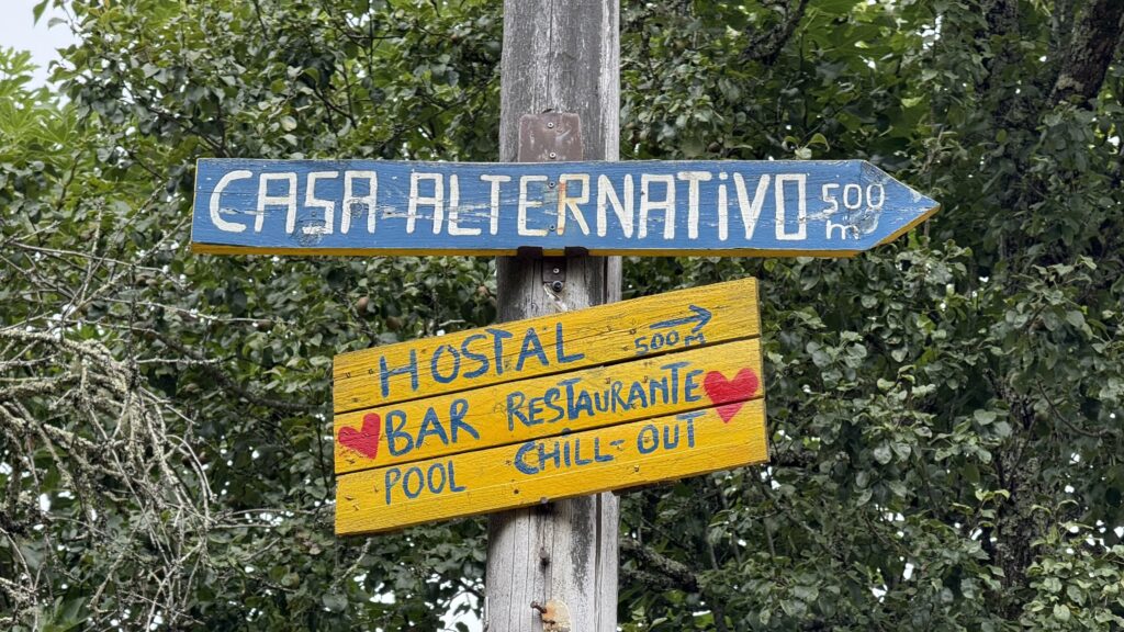 Zwei Kilometer später: Herberge. „Casa Alternativo“. Geführt von einem Belgier und seinem Hund Otto. „Treis“ – so sein Name – bastelt hier permanent an neuen Projekten, schafft kleine Oasen: Pools, Liegemöglichkeiten, bunte Ecken zum Ruhen und Verweilen. Alles strahlt Ruhe und Freude aus – als hätte sich hier jemand sein kleines Paradies geschaffen. Neun Monate im Jahr lebt er hier, die restlichen drei reist er durch die Welt. Ein Lebenskünstler, ganz leise und wunderbar anders. Meditativ.
