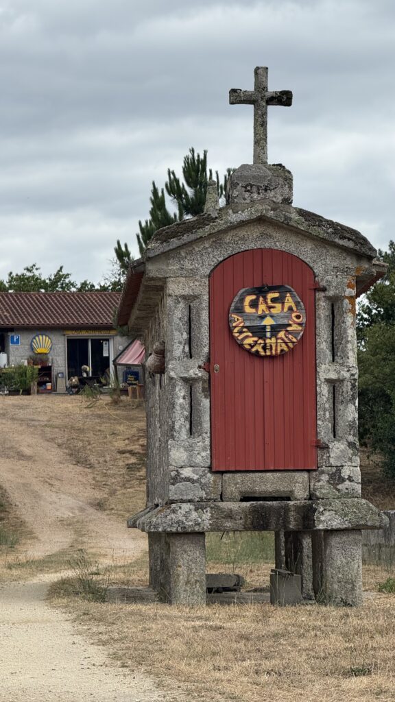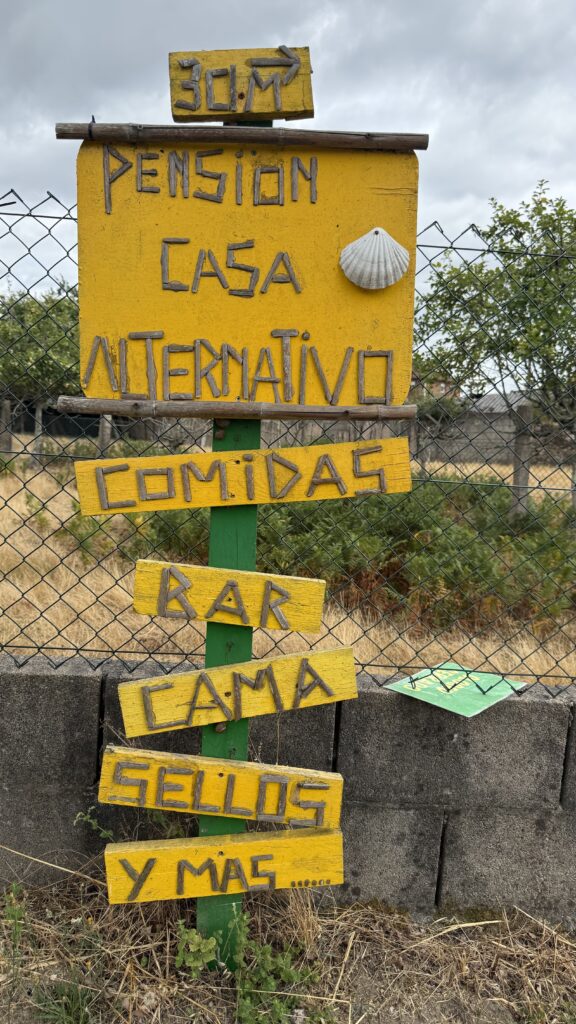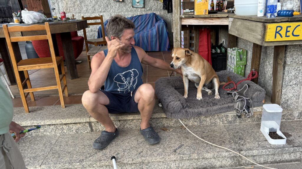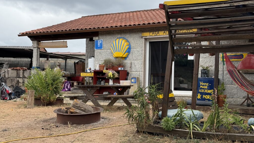 Nach dem Essen gibt uns Treis wertvolle Tipps für die nächsten Etappen. Er rät uns, ausgewählte Herbergen anzusteuern, die besonders schön, besonders herzlich, besonders … camino sind. Er kennt sie – ist alle 7 Caminos an einem Stück gelaufen bis er seinen Ort der Ruhe fand. Ohne Geld, 5 Jahre zur Miete. Dieses Jahr wird sein Ruhepohl gekauft. Er strahlt.