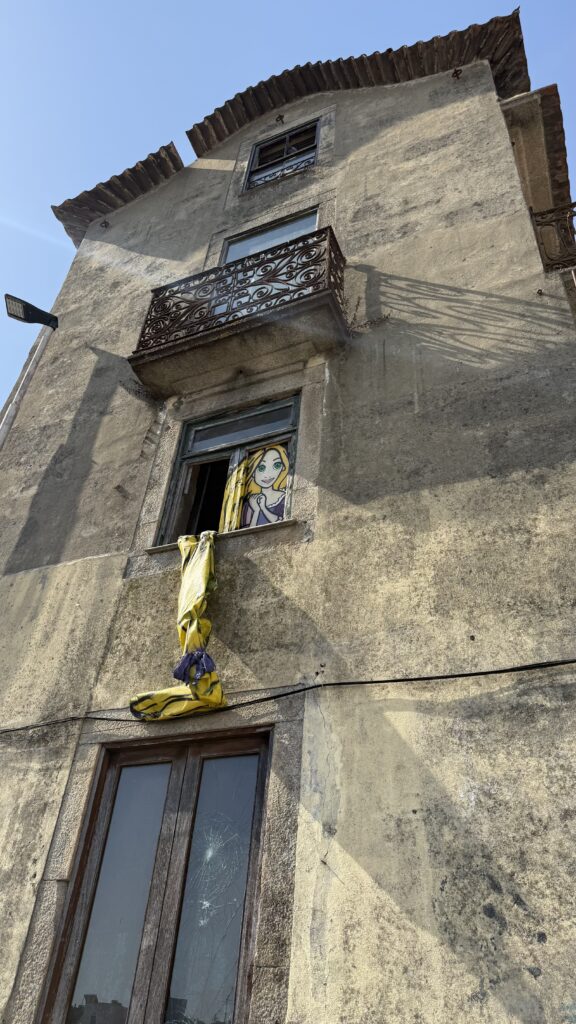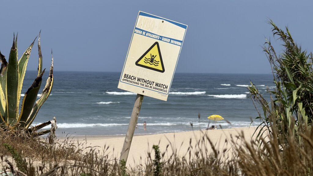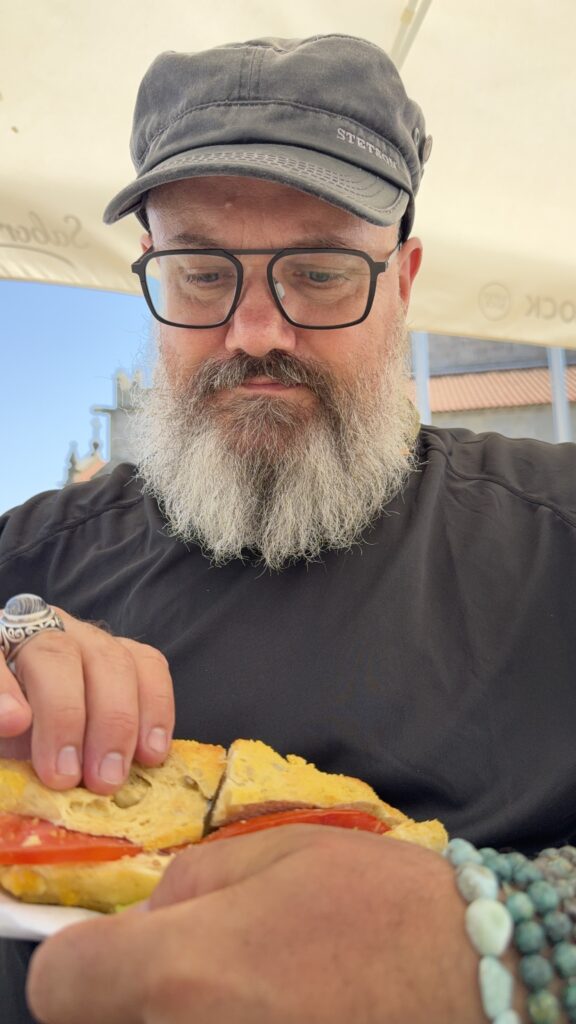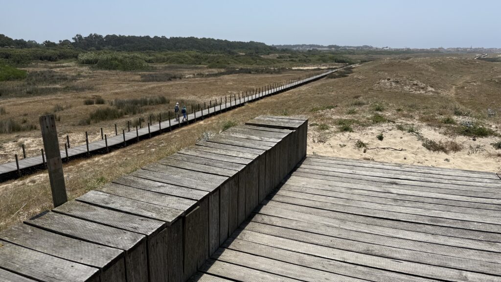 Weiter geht es besonders langsam, um meine Füße zu schonen. Sobald die Schmerzen stärker werden, gibt’s eine Rast – und so watschle ich nach einer Weile wie ein kleiner Pinguin durch die Straßen Portugals, auf der Suche nach einer Einkehr. Die ließ auf sich warten, aber als ich endlich ankam, flogen die Schuhe förmlich von den Füßen – und letztere atmeten auf. Leider war ich viel zu flott, so dass ich die Bestellung von Wasserflasche und Meeresfrüchte-Baguette glatt in Wandersocken erledigen musste. Service outdoor – Fehlanzeige.