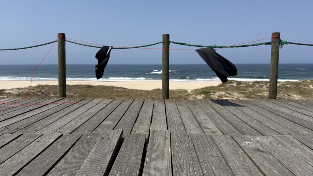 Zum Aufbruch zu meiner kurzen Reise heute gab es erstmal einen leckeren Kaffee, und fünf Kilometer weiter eine erste Rast auf einem Holzplateau inmitten der Dünen. Wäscheleine gehiest – und zack, flatterte meine noch feuchte Kleidung vom Waschtag zuvor im Wind. Nachhaltige Improvisation: mein persönlicher Wäschetrockner mit Panorama. Und als wär der Tag noch nicht kurios genug, kamen zwei Urlauber vorbei. Deutschsprachig. Ich erkannte ihren Dialekt und fragte spaßeshalber: „Kommt ihr aus Baden-Württemberg?“ Treffer. Sie kamen nicht nur aus meinem Heimatbundesland oder gar Heimatstadt, sondern direkt aus meinem Heimatort, einem kleinen Bergdorf bei Karlsruhe. Verrückt. Wir unterhielten uns eine Weile – und am Ende hatten sie ganz neue Möglichkeiten im Umgang mit Smartphone-Fotografie gelernt. Läuft.