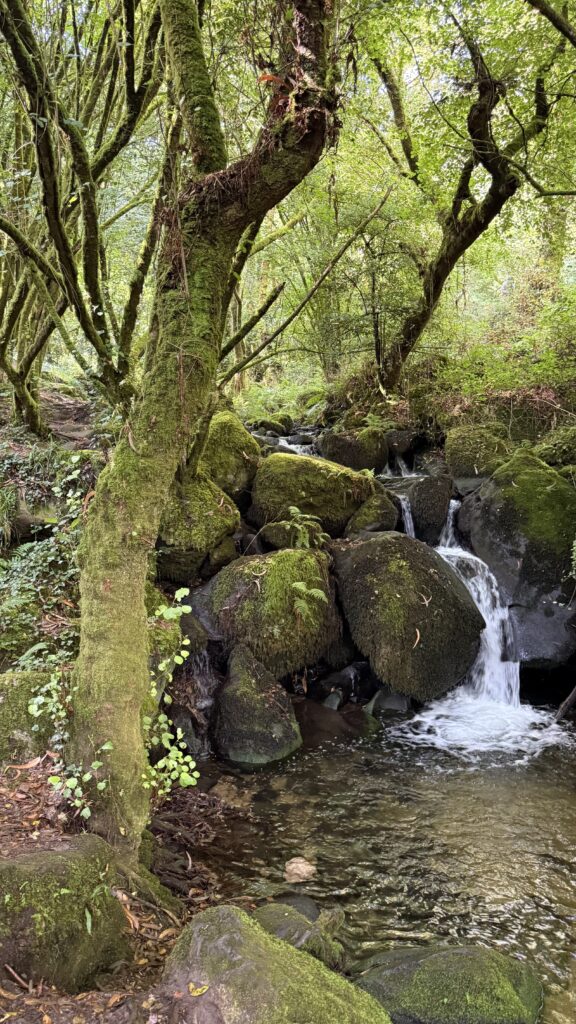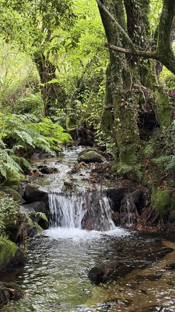 Es geht bergab. Richtig steil bergab. Stock und Stein. Vom nächtlichen Regen noch glitschig. Vorsicht ist geboten. Ich laufe die „Ruta Da Pedra E Da Auga“, ein Name (zumindest auf Spanisch) wie Musik, ein Weg wie Magie. Ein Fluss begleitet mich wie ein treuer Freund. Wasserfall reiht sich an Wasserfall, ein Naturspektakel sondergleichen. Einer nach dem anderen. Ich bleibe stehen. Wieder und wieder. Zum Staunen. Zum Lauschen. Zum Schauen. Für 4 Kilometer brauche ich fast 3 Stunden – nicht, weil ich nicht schneller könnte, sondern weil ich nicht will. Ich will nicht, dass das aufhört. Lass die Zeit stillstehen. Ich will alles aufsaugen – das Leben.
