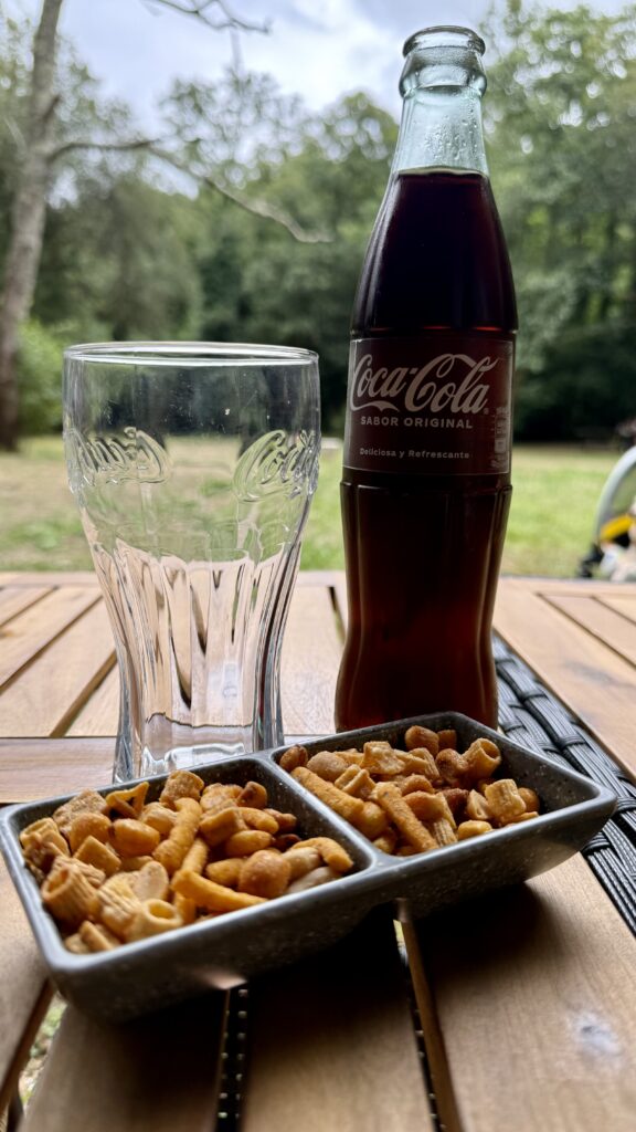 Drei Kilometer vor dem Ziel trennen sich unsere Wege. Seine Familie sinnt es nach Pause und er ist heute allein gegangen. Mit leerem Kinderbuggy. Ich gehe weiter. Mache eine Pause, gönne mir ein Bier – ja, auch das gehört zum spirituellen Pfad. Und es Nieselt. Wenig aber nass. Währenddessen mache ich eine interessante Beobachtung.