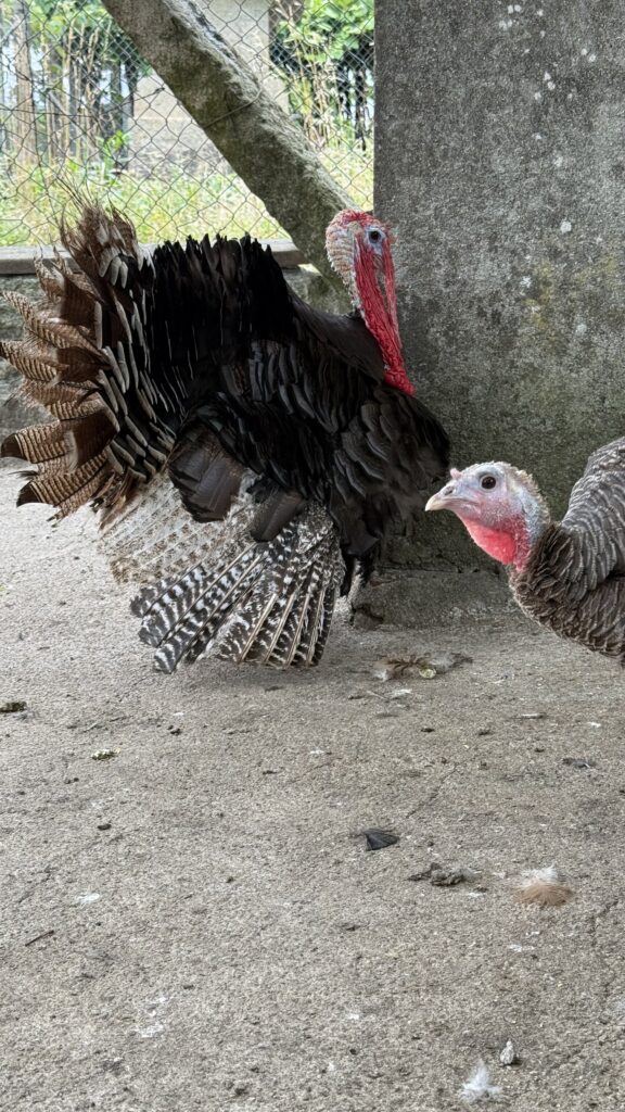 Auf den letzten Metern entdecke ich noch etwas Unerwartetes: ein Truthahngehege. Ja, richtig gelesen. Zwischen Pilgerpfad und Endstation stolzierten da ein paar dieser urzeitlich aussehenden Federgetiere durch ihr Gehege, stolz wie Gockel auf Speed. Über Geschmäcker lässt sich bekanntlich streiten, aber hey – jeder Topf findet seinen Deckel. Dieser Truthahn auch. Nur wie?