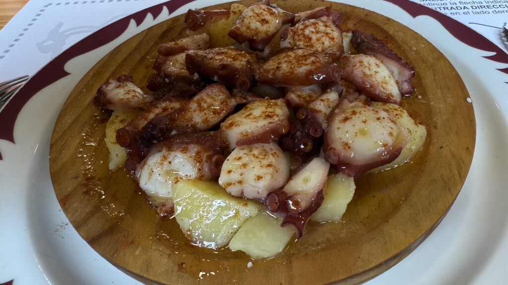 Ich suche mir unterwegs ein Restaurant. Heute gibt’s Pilgermenü. Qualität geht so. Ich starte mit Octopus – Galicien, ich will dich schmecken. Danach? Eine gefühlte halbe Kuh auf Pommes. Ich schaffe es nicht. Lasse Kartoffel, Pommes und Kuchen liegen. Mein Magen ächzt: Wegen Überfüllung geschlossen.