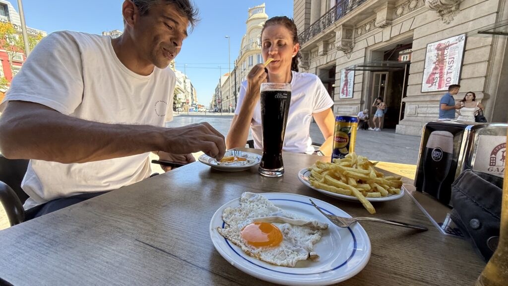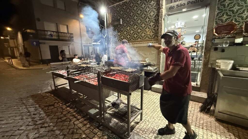 Später fahren wir raus aus dem Trubel, in ein kleines Fischerdorf „Afurada“ etwas außerhalb. Dort, so heißt es, gibt es das beste Essen der Region – authentisch, lebendig, preislich angemessen und vor allem: hausgemacht. 22:30 Uhr abends wird dort noch gekocht, gegrillt, gefeiert. Die Straßen werden zu Küchen, die Bürgersteige zu Tafeln. Überall raucht es aus den Holzkohlengrills und in der Luft liegt ein typischer Duft: gegrillter Fisch. Ein Traum. Nur leider … sind wir etwas zu spät: 22:40 Uhr! Der Umsatz ist im Sack, die Lust ist aus, die Töpfe leer. Aber der Abend? War trotzdem perfekt. Ein würdiger Camino-Abschluss. Nur eben ohne gegrillten Fisch. Zumindest heute.