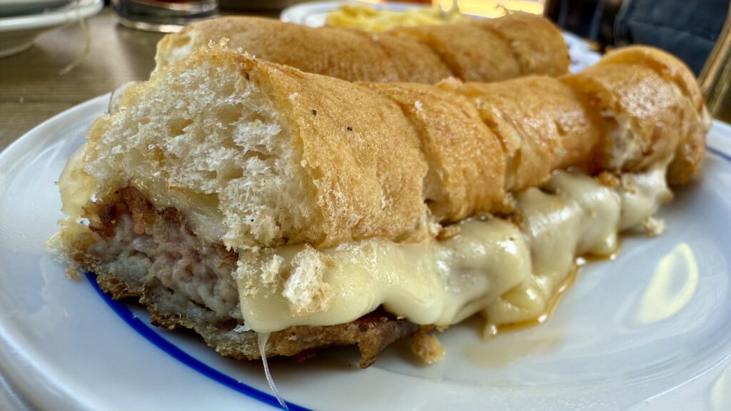 Damit wir – also insbesondere ich, nicht vom Fleisch fallen – essen wir eine Spezialität die es nur in Porto gibt: Ein HotDog auf Portugiesisch – ein „Cachorrinho“ in der dafür besten Kneipe „GAZELA“. Sagenhaft!