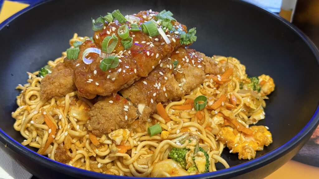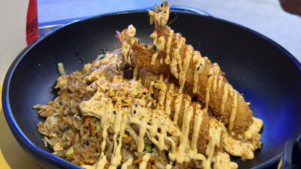 Stattdessen kutschiert uns Melanie zum Einkaufszentrum. 30 Minuten Fahrt. Dort gibt es Thai-Schellimbiss mit Nudeln. Ein würdiger Schluss.