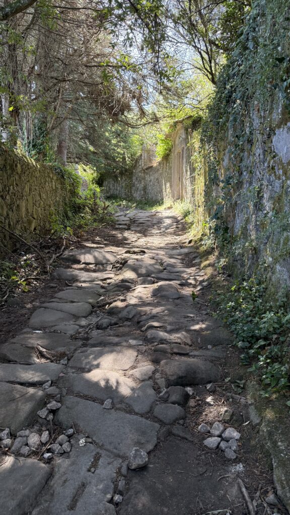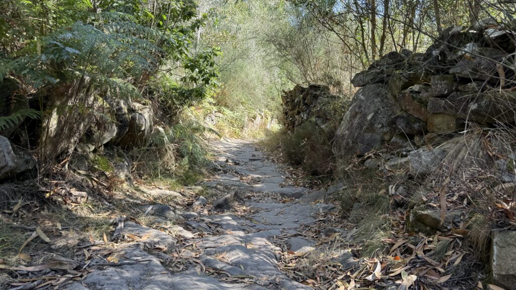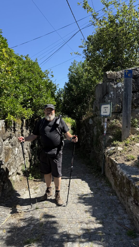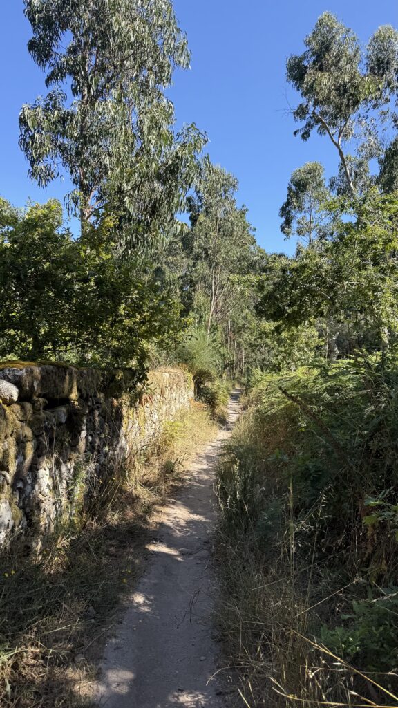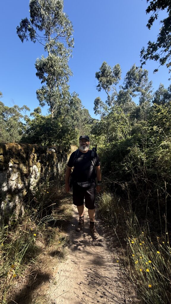 Steffi und ich starten zusammen, wandern über sanfte Berge und knarzende Wanderpfade. Der Boden? Durchzogen von Wurzeln, übersät mit Steinen – eine perfekte Mischung aus wunderschön und fußfeindlich. Aber das ist uns egal. Denn wir reden. Über Kinder. Über Erziehung. Über die Wege des Lebens, die wir selbst gegangen sind. Es sind tiefe, schöne und vor allem wertvolle Gespräche. Camino-Gespräche. Mein Dank an Steffi es war mir ein Fest – für Worte, die auch in Zukunft mitwandern.