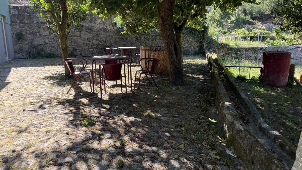 Doch der Camino bleibt für mich der Camino – und so liegt meine Herberge heute nicht direkt am Weg, sondern stolze 1,8 Kilometer abseits. Das passiert, wenn man schnell zwischendurch bucht und sich keine Zeit nimmt. Egal. Und weil ich keine Lust habe, meine Einkäufe (3 große Flaschen Wasser, Nudeln, Tomatensauce, Emmentaler) dorthin zu schleppen, gönne ich mir kurzerhand ein Uber. Der Fahrer kommt aus meiner Vergangenheit und braucht 17 Minuten für die Strecke, für die ich vorher zwei Tage zu Fuß gebraucht habe. Ohne Schmerzen, klimatisiert versteht sich – ohne unvergessliche Erinnerungen. Jetzt bringt er mich in mein Paradies – für eine Nacht. Er fährt durch verwinkelte, steil ansteigende Gassen, kleine Häuschen, passiert das ein oder andere Nadelöhr und kommt höher und höher. Ich denke: gut, dass es Ueber gibt.